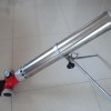 半固定式泡沫滅火裝置在滅火時其管線式比例混合器的兩端的管牙接口與消防水帶連接,并連接壓力水源,當有不低于0.6MPa壓力的水以很高的速度流過比例混合器的噴嘴時,由于射流質點的橫向移動的擴散作用,比例混合器的室內形成真空(負壓),于是泡沫液儲罐內的泡沫液在大氣的壓力作用下通過吸液管進入混合器,與壓力水混合,最終達到一定比例的混合液。當具有一定壓力的混合液流到噴槍時,因為噴槍的性能會吸入~定量的空氣。使