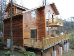 輕型木屋別墅,它是通過各個結構部件的緊密合作,將結構骨架和墻面板,樓面板,屋頂等共同承擔到一起,再將荷載轉移到地面的一種結構形式。