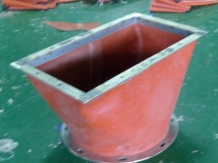 QQ圖片20141029073836蒙皮制作過程中圓形軟連接 構成其工作主體的彈性元件是非金屬材質,通常是纖維織物,所以又稱織物補償器(膨脹節、伸縮節)。另有橡膠材質,此種材質除了在超高溫度(400以上)情況下不能滿足使用條件的情況下,其他各種工況均可以替代纖維織物.