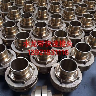 消防水龍帶接頭是消防工作中常用的一種接口,主要用于水帶接長時水帶之間的連接,它是靠兩對扣爪內滑槽相連接的一種快速接口、具有連接簡便,解脫迅速的優點。用于水帶與水帶、消防車,消火栓、水槍之間連接,以便輸送水或泡沫混合液進行滅火。它由本體、密封圈座、橡膠密封圈等零部件組成,密封圈座上有溝槽,用來扎水帶。水龍帶接口用于消防車、消火栓、水栓、水帶之間的連接。以便輸送水或泡沫混合液進行滅火。 本品是多種消防器材上附屬的連接配件,附屬在水槍和消火栓上面。快速、省力、密封性能可靠。全黃銅質材料生產,堅固耐用,產品結構型式是目前消防車最可靠的配套裝備。
