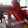 消防防化服是消防員防護(hù)服裝之一,它是消防員在有危險性化學(xué)物品和腐蝕性物質(zhì)的火場和事故現(xiàn)場,為保護(hù)自身免遭化學(xué)危險品或腐蝕性物質(zhì)的侵害而穿著的防護(hù)服裝。消防防化服采用經(jīng)阻燃增處理的錦絲綢布,雙面涂覆阻燃防化面膠,制成遇火只產(chǎn)生炭化,不常人溶滴,又能保持良好強(qiáng)度的膠布作為主材,經(jīng)貼合-縫制-貼條工藝制成服裝主體和手套,并配以阻燃、防化、耐電壓、抗刺穿靴構(gòu)成成套服裝。 阻燃防化膠布性能 膠布厚度: 0.45±0.05mm。 拉伸強(qiáng)度: 經(jīng)緯向≥450N/5cm。 耐撕裂強(qiáng)度: ≥32N。 防酸堿滲透性能: 10mm液柱lh不滲透。 抗汽油性能: 120#汽油浸泡30s無裂紋、不發(fā)粘。 阻燃性能: 續(xù)燃時間≤2s,阻燃時間≤10s,損毀長度≤10cm,無熔滴 防化靶性能 靴底電絕緣性能: ≥5000v。 靴底耐刺穿性能:≥780N。 靴的防水性能: 浸水2h,不滲水。 防化服性能 貼條粘附強(qiáng)度: ≥0.78kn/m 抗水滲漏性能; 5支3L/min噴頭沖刷15min不滲漏 整體重量 ≤5kg