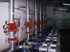 噴頭安裝 1 噴頭安裝應在系統試壓、沖洗合格后進行。 2 噴頭安裝時宜采用專用的彎頭、三通。 3 噴頭安裝時,不得對噴頭進行拆裝、改動,并嚴禁給噴頭附加任何裝飾性涂層。 4 噴頭安裝應使用專用扳手,嚴禁利用噴頭的框架施擰;噴頭的框架、濺水盤產生變形或釋放原件損傷時,應采用規格、型號相同的噴頭更換。 5 當噴頭的公稱直徑小于10 mm時,應在配水干管或配水管上安裝過濾器。 6 安裝在易受機械損傷處的噴頭,應加設噴頭防護罩。 噴頭濺水盤高于梁底、通風管道腹面的最大垂直距離 7 噴頭安裝時,濺水盤與吊頂、門、窗、洞口或墻面的距離應符合設計要求。 8 當噴頭濺水盤高于附近梁底或高于寬度小于1.2 m的通風管道腹面時,噴頭濺水盤高于梁底、通風管道腹面的最大垂直距離應符合表5.2.8的規定。 9 當通風管道寬度大于1.2 m時,噴頭應安裝在其腹面以下部位。 10 當噴頭安裝在不到頂的隔斷附近時,噴頭與隔斷的水平距離和最小垂直距離應符合表5.2.10 的規定