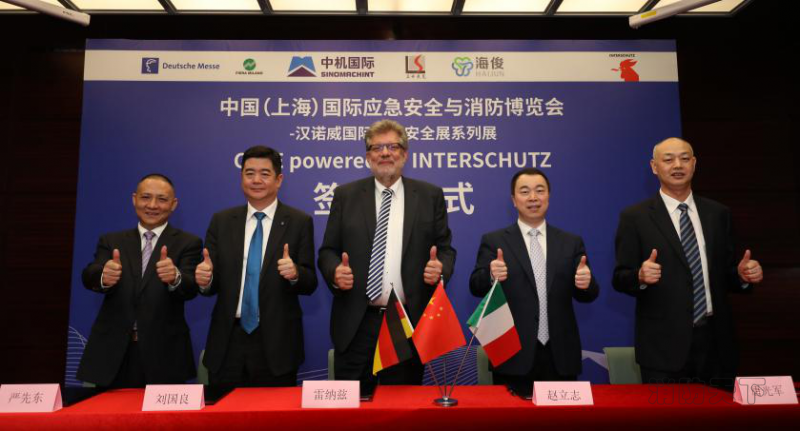 5月8日,德國漢諾威展覽公司、漢諾威米蘭展覽(上海)有限公司、中國機械國際合作股份有限公司、廣州立升展覽服務有限公司和廣東新海俊發展有限公司在深圳簽署合作協議,五家單位將于2019年11月6-8日在上海新國際博覽中心共同舉辦中國(上海)國際應急安全與消防博覽會(以下簡稱:CEFE Powered by INTERSCHUTZ)。