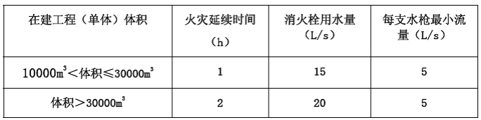 在建工程的臨時(shí)室外消防用水量不應(yīng)小于表5.3.6 的規(guī)定: