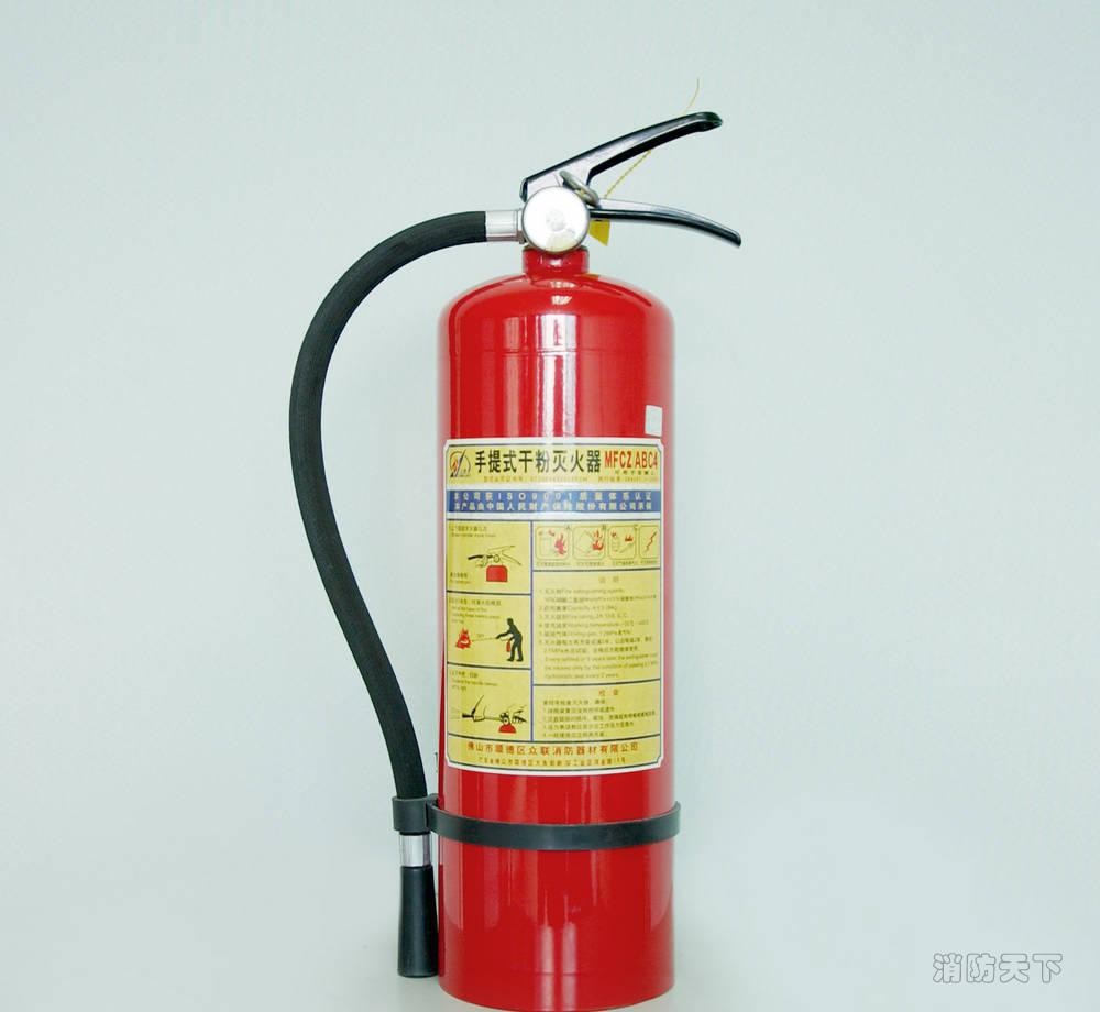 主要用于撲滅家庭初起火災,可以撲滅木材、汽油、燃氣火源。家庭用一般的2公斤以下的就可以了,也可以根據房間面積,準備一到兩個。該類器材需要放置在干燥、通風且隨手可拿到的地方。同時避免陽光照射和雨淋,并遠離腐蝕性物質。此外,需要每兩年定期檢查,看是否過期或壓力不足;進行再充裝前,滅火器簡體必須經2.5MPa水壓檢驗,合格后才能使用。