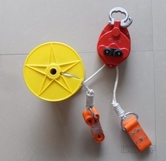 救生緩降器是供人員隨繩索靠自重從高處緩慢下降的緊急逃生裝置。建議3—5樓的居民在危急時使用。緩降器繩子的長度應根據自家的樓房高度情況選擇,寧長勿短:內芯為軍用航空鋼絲,外包由尼龍線編織而成的逃生繩是首選。如果選擇的是逃生繩,則在不用時最好每隔一段打一個疙瘩,逃生時可防止手滑。在使用逃生繩時,可事先在一些堅硬的地方墊上一些床單衣物,防止逃生過程中磨斷繩索。為了防止突發火災時手忙腳亂,平時可以把繩子固定在室內堅固的地方,一旦發生火災,就可以救急逃生。