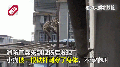 四川樂山城區,一只喵星人不知什么原因,被鋼管穿透身體,在房頂堅持了2天后終被救下。有網友表示:每一個生命都應該被珍愛,為熱心市民和消防員點贊!