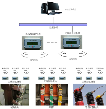 溫度歷來是一個非常重要的參數,在電力、煤炭、醫療、軍事和生活等許多地方,都需要用到測溫裝置來檢測溫度。溫度的實時監測已經成為各行各業進行安全生產和減少損失采取的重要措施之一。特定場合下由于監測點比較分散、偏遠,采用傳統的溫度測量方式周期長、成本高,而且測量員必須到現場進行測量,因此工作效率非常低。電力系統高壓設備在長期運行過程中常出現表面氧化腐蝕、緊固螺栓松動,觸點和母線排連接處老化等問題,時常造成設備過熱甚至爆炸。而開關柜內有裸露高壓,空間封閉狹小,無法進行人工巡查測溫,傳統的測溫方式都無法有效地解決這個問題。JC-CWS/1無線測溫系統是將溫度傳感器安裝到開關柜內的帶電接頭觸點上,在線測量該點溫度后,以無線方式將數據上傳,集中顯示,并實現超溫報警。還可與電力自動化系統連接,用戶在遠端監視設備溫度運行狀態,系統發現設備溫度異常,自動遠程報警及時發現事故隱患。