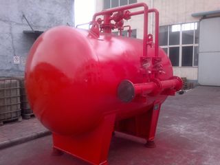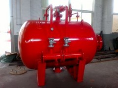PHYM系列壓力式比例混合裝置是由泡沫液儲罐、膠囊、壓力式比例混合器、安全閥、控制閥門及一些輔助零部件組成。當消防壓力水流經該設備時,比例混合器將其按比例分流,其中一小部分水進入帶膠囊的泡沫液儲罐夾層,擠壓膠囊,置換出的泡沫液與其余主管道的消防水混合為一定比例的泡沫混合液,并輸給泡沫產生設備。