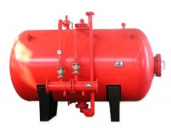 二、工作原理 壓力水經水管路進入罐體內,產生壓力擠壓膠囊使泡沫液經出液管被擠出,使泡沫液與比例混合器中的水自動按一定比例混合成混合液, 流經空氣泡沫產生器、泡沫炮噴出泡沫,進行滅火工作。